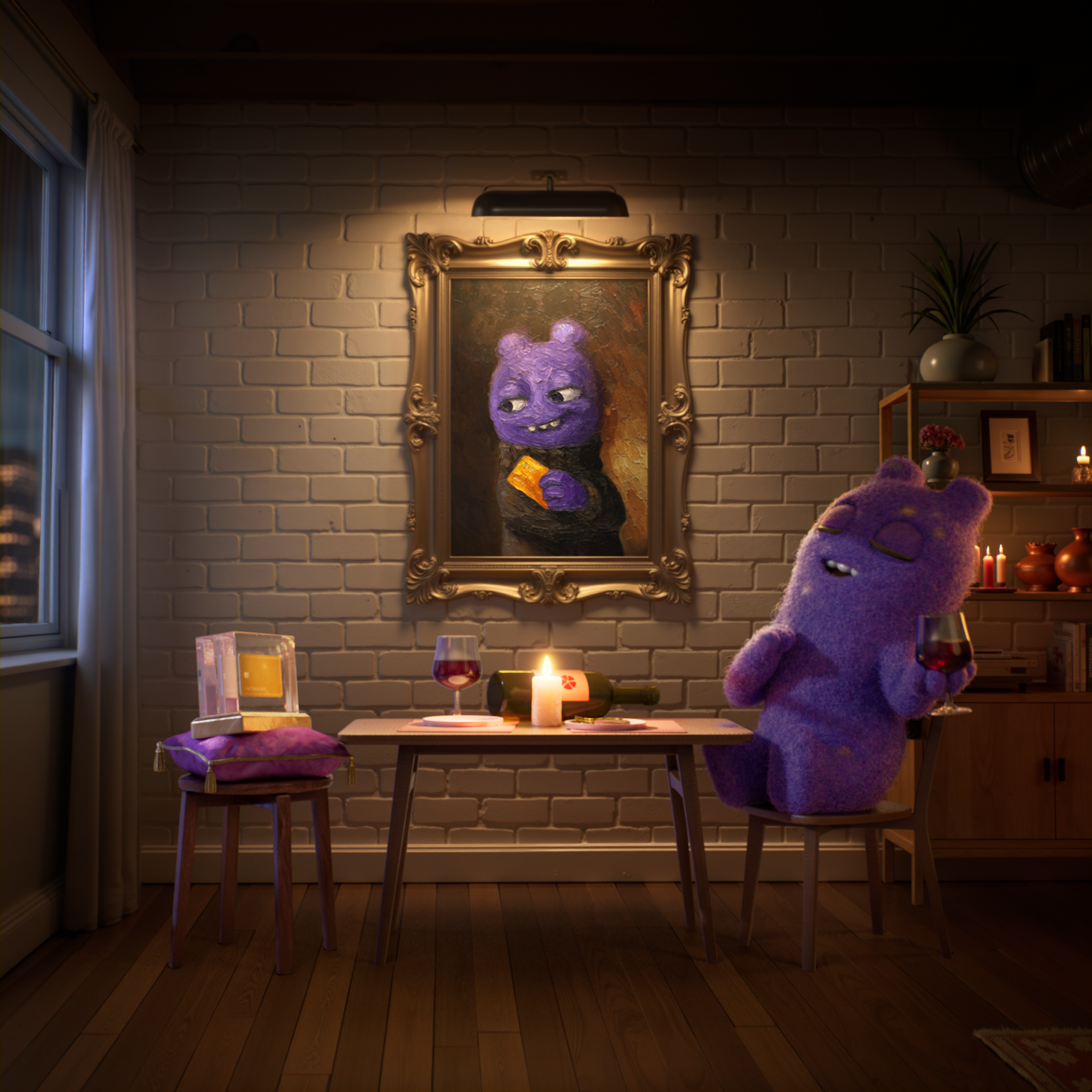 Background environments began as rough concept art and were developed into final matte paintings using generative AI (Flux), then integrated into the 3D pipeline. A key focus of the work was balancing AI-generated imagery with physically grounded lighting, camera integration, and compositing to seamlessly support the animated characters and narrative tone.