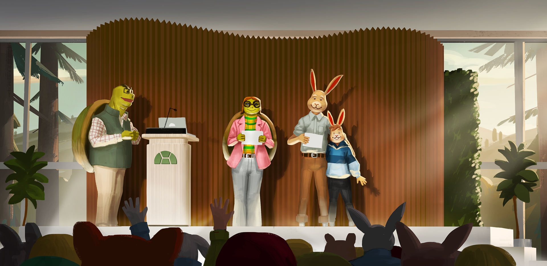 This pair of commercial spots combines handcrafted miniature sets with traditional 3D character animation to bring a modern retelling of The Tortoise and the Hare to life for the University of Phoenix.